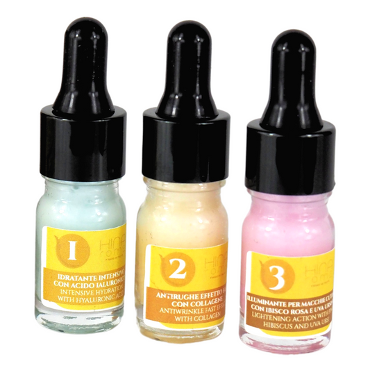 3x Siero Idratante con Acido Ialuronico | 3x Siero Antiage al Collagene Marino | 3x Siero con Ibisco Rosa | Prodotto a Roma | 45 ml